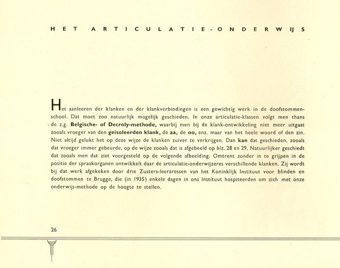 Lezers en kijkers. Zie de foto 27 - 28 - 29 Het was tijd gekomen voor de doofstommen leerlingen aan het buurt van de spreekmethode moesten leren. Zoals de ouders van hun doofstommen kinderen hebben zeer hun dringend verzoek gesporken dat hun doofstommen kinderen zo mogelijk de spreekmethode kunnen leren dit gebeurde was op de oude Instituut in Nieuw Herlaer in 1855 DE bekende 3 ivd oud-leerlingen M. Neep, G Nales en A. Broeders allebeiden op het oude instituut hebben geleerd van het gebarentaal en vingerspelling met zonder spreek-methode en liplezen. Zo in 1880 waren 255 dovenonderwijsers aanwezig uit geheel Europa in Milaan en elkaar de discussies voor de voorkeur te geven aan spreken en liplezen boven gebarentaal. die de belangerijkste reden van dat doven zo meer contact kregen met horenden en beter funtctioneerden in de samenleving. Maar Directeur C Terwindt was daar echter geen voorstander van en hield vanuit een oprechte overtuiging vast aan de gecombineerde methode.