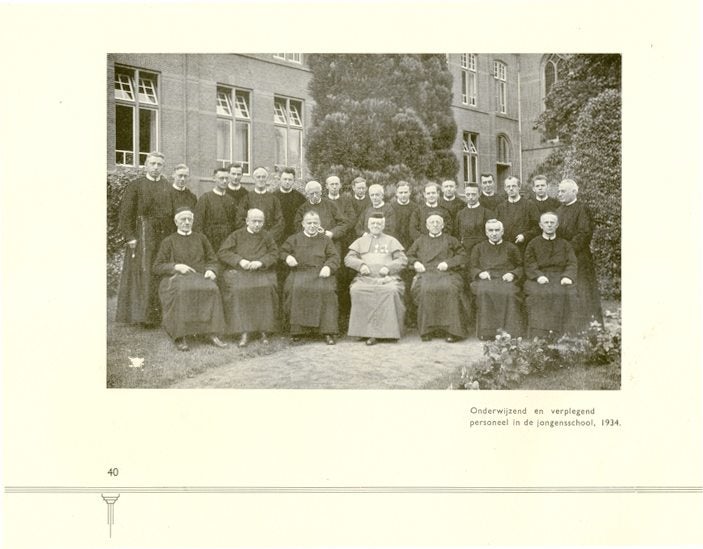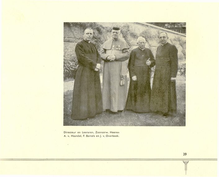 Lezers en kijkers. foto 39, dat ik op site heb geschreven in weblog nr 19 ivdvaraitie 1. ( foto 3 ). Ik herhaal de namen van de 4 priesters die op het instituut werkzaam in 1930 Van links naar rechts de prietsters-leraren Mhr Bartels , Mgr A Hermus directeur, Mher v Haandel en Mhr v Overbeek.